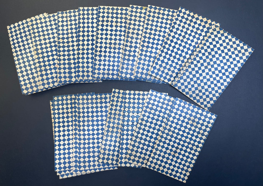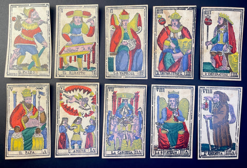 CONDITION: good condition; complete 78 cards; signs of minor wear from use, several cards pictured with staining & damages; cards slightly bowed. (see photographs).
