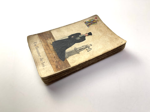 CONDITION: good condition,  incomplete 31/32 cards, with original box lacking top lid; signs of wear, scuffing and soiling from use, age darkening, occasional minor stains, some signs of patina, and edge and corner wear; lower portion of telescopic box with wear; chips and soiling of label, edge & corner wear, and repair of bottom seam. (see photographs)