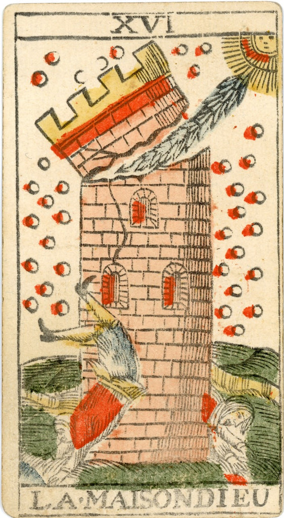 c.1790 Single La Maison Dieu (Tower) Card by L. Carey Pre-Revolutionary Besançon Tarot