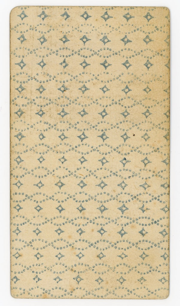 The blocks for the Carey Besançon deck were initially engraved by Francois Isnard (1695 -1765) and used by several cardmakers. Prior to Carey, J.B. Benoist produced the cards between c.1761 and 1783, succeeding his father, the Maître Cartier (master cardmaker) David Benoist. There's a copy of a Benoist Besançon held at the British Museum with the same versos/back pattern as this Carey card (BM 1896,0501.545.1-76)