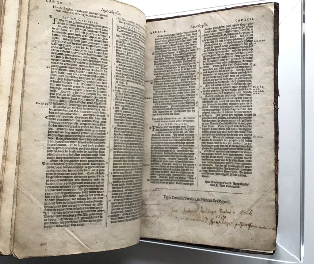 FULL TITLE: DAT IS DE GEHEELE HEYLIGHE SCHRIFTURE BEDEYLT INT OUT ENDE NIEU TESTAMENT: VAN NIEUS MET GROOTE NEERSTICHEYT OVERSIEN, ENDE NAER DEN LESTEN ROOMSCHEN TEXT VERBETERT DOOR SOMMIGHE DOCTOREN INDER HEYLIGHER GODTHEYT INDE VERMAERDE UNIVERSITEYT VAN LOVEN.