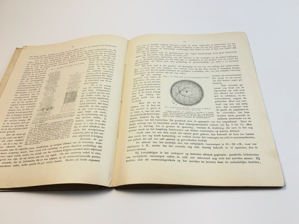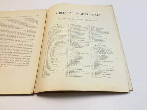 [Anatomy/Medicine] Coronel, S. De hersenen en de zintuigen van den mensch. Amsterdam: A. van Klaveren, n.d.(c.1900). 8vo., 32 pp.: ill, 1 page glued to the back board with five moveable/foldout anatomical coloured diagrams; Original illustrated cardboard covers with red linen spine.