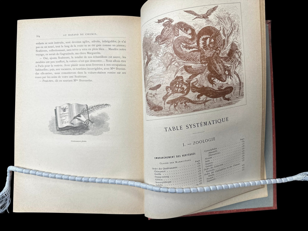FULL TITLE: Au hasard du chemin. Voyage de jeunes naturalistes de la Manche aux Alpes. Etudes pittoresque des bêtes, des plantes, des pierres. Leur description, station, classification, moeurs, usages, récolte, conservation avec 666 illustrations, 20 Chromo et Planches hors texte