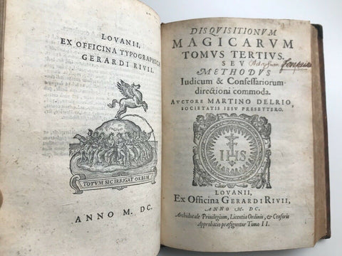 FULL TITLES: Vol 1: DISQVISITIONVM MAGICARVM LIBRI SEX, IN TRES TOMOS PARTITI. Auctore MARTINO DELRIO, Societatis IESV Presbytero. Tomus Primus.
