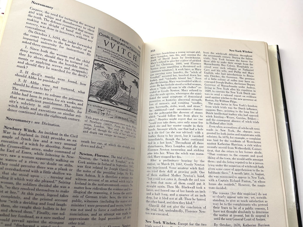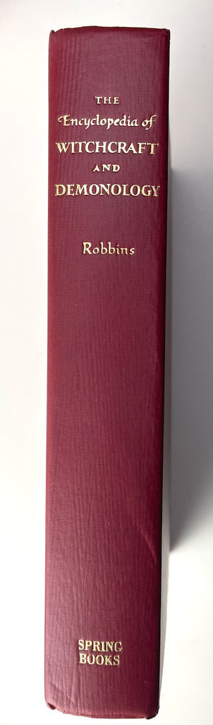 Rossell Hope Robbins. The Encyclopedia of Witchcraft and Demonology. London: Spring Books, 1967. Fourth Impression, 8vo. pp.571; 250 in-text illustrations; with a select bibliography of 1140 items; Dust jacket over red cloth binding.