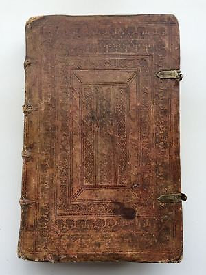 CONDITION: Good condition; book unfortunately lacking its title page, as well as lacking the 3-part map of the Basel region; ex libris bookplate with the name Staehelin, as well as signature dated 1580; first 60 or so pages are in an average state, some restored, one includes a lack that is seen in the photo; text otherwise is correct, with light soiling, wear of edges & parchment-like brittleness, as well as darkening and discoloration of paper; tooled leather boards secure, leather with some deficiencies, minor damages (scratches of leather & scuffing of both boards, as well as a couple of small gouges & a stain on front board), gutters repaired, edges worn & corners bumped, spine with minor damages of leather, 1 inch separation starting at lower front corner & label lacking with sticker in its place (as pictured); working clasps perfectly intact and in good condition. BOOK MEASUREMENTS: 32 cm X 20.5 cm