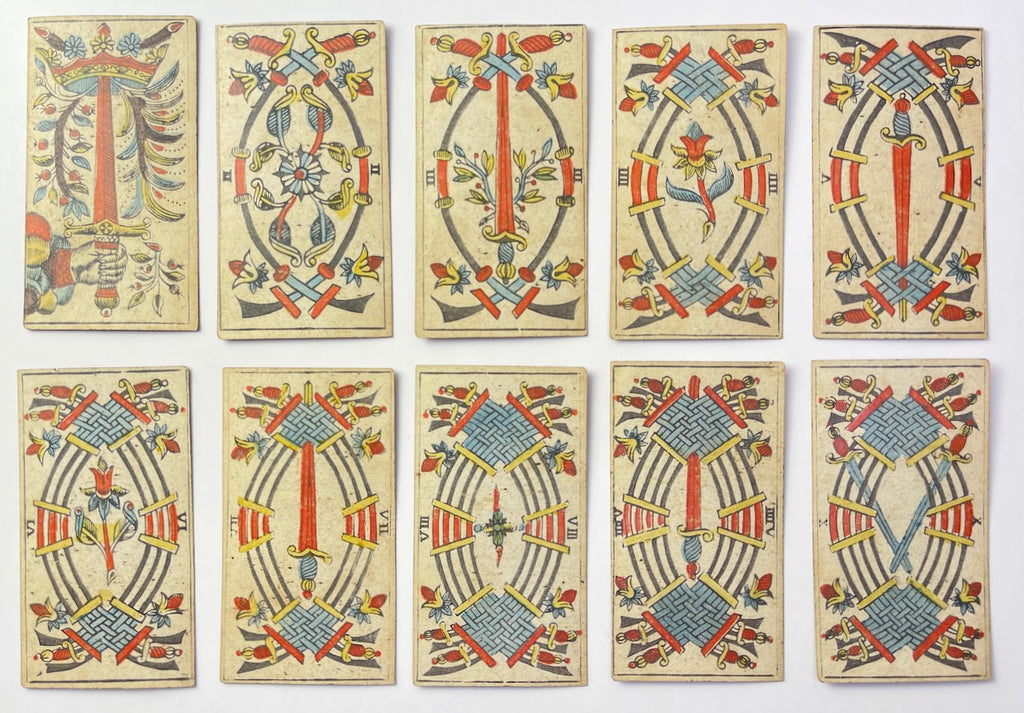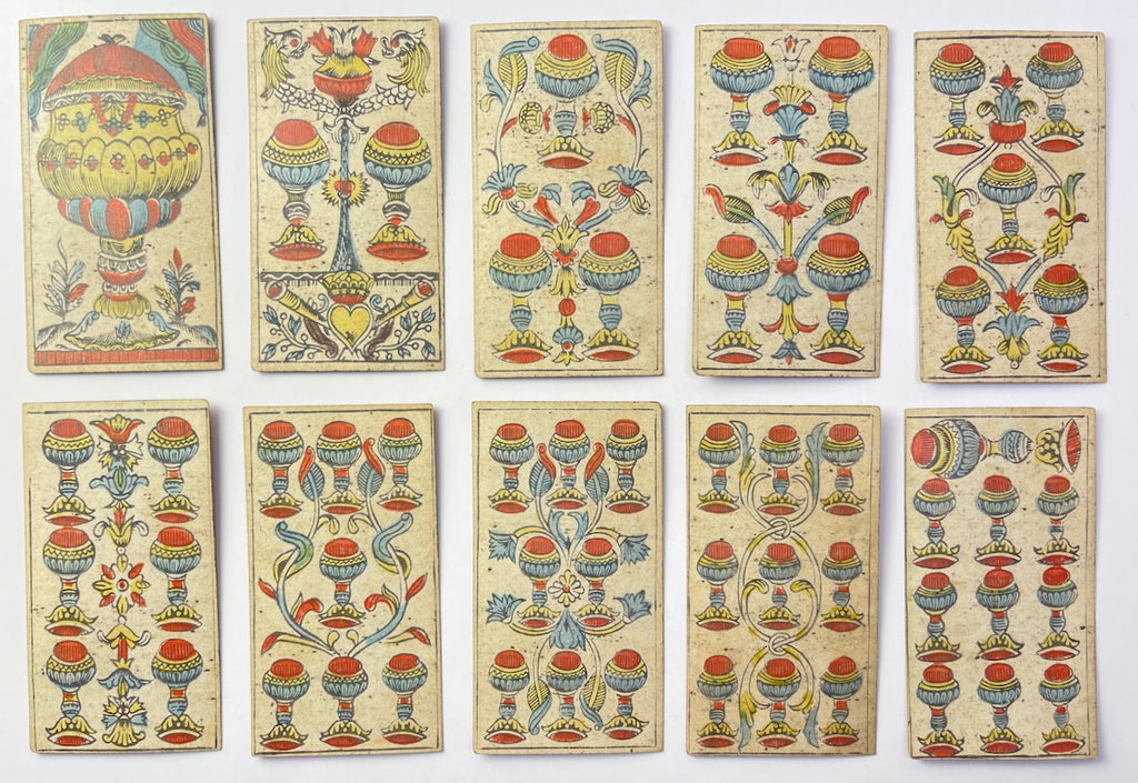 c.1870 Gassmann Tarot de Marseille, complete 78 of 78 cards